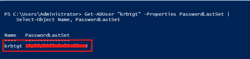 $krbtgtUpdated = Get-ADUser -Identity "krbtgt" -Properties PasswordLastSet